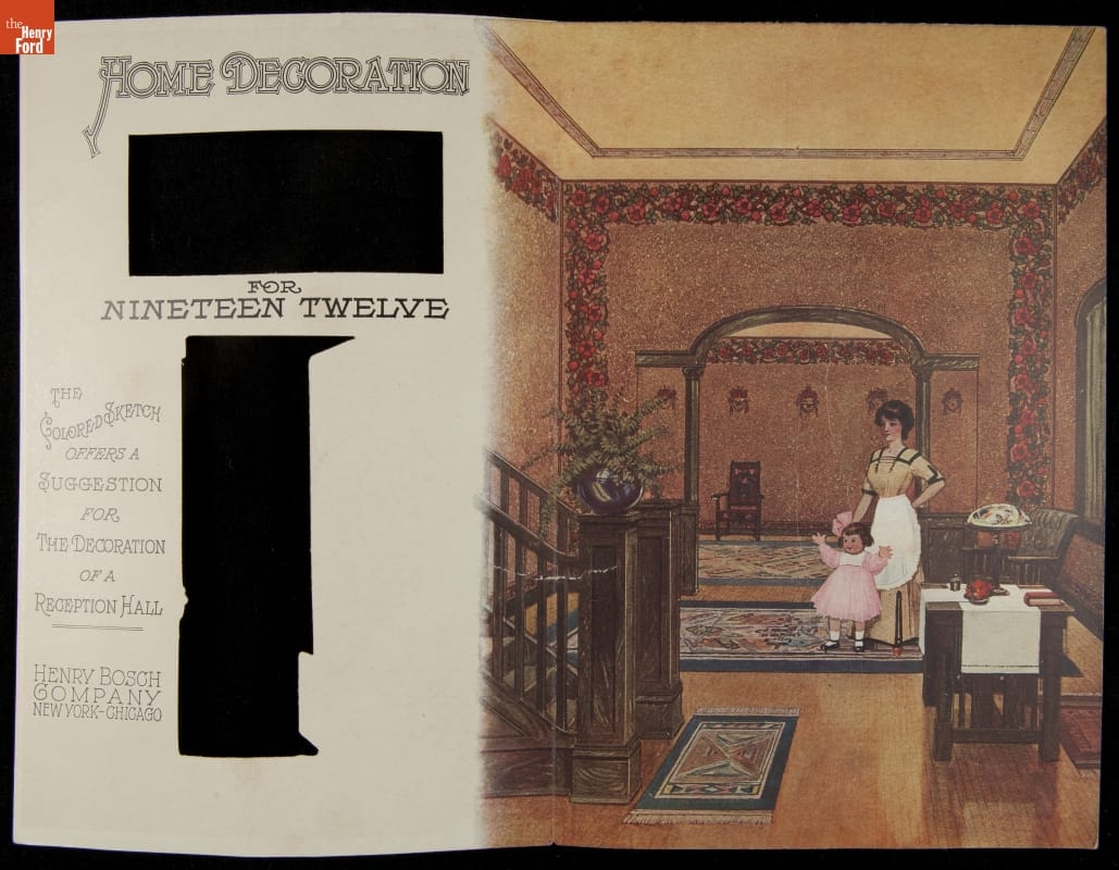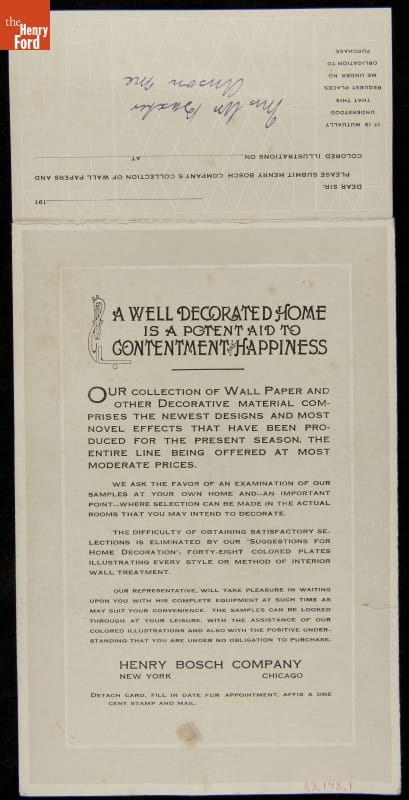 Trade Card for Henry Bosch Company, "A Well Decorated Home is a Potent Aid to Contentment & Happiness," 1912