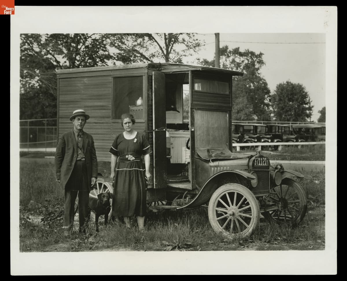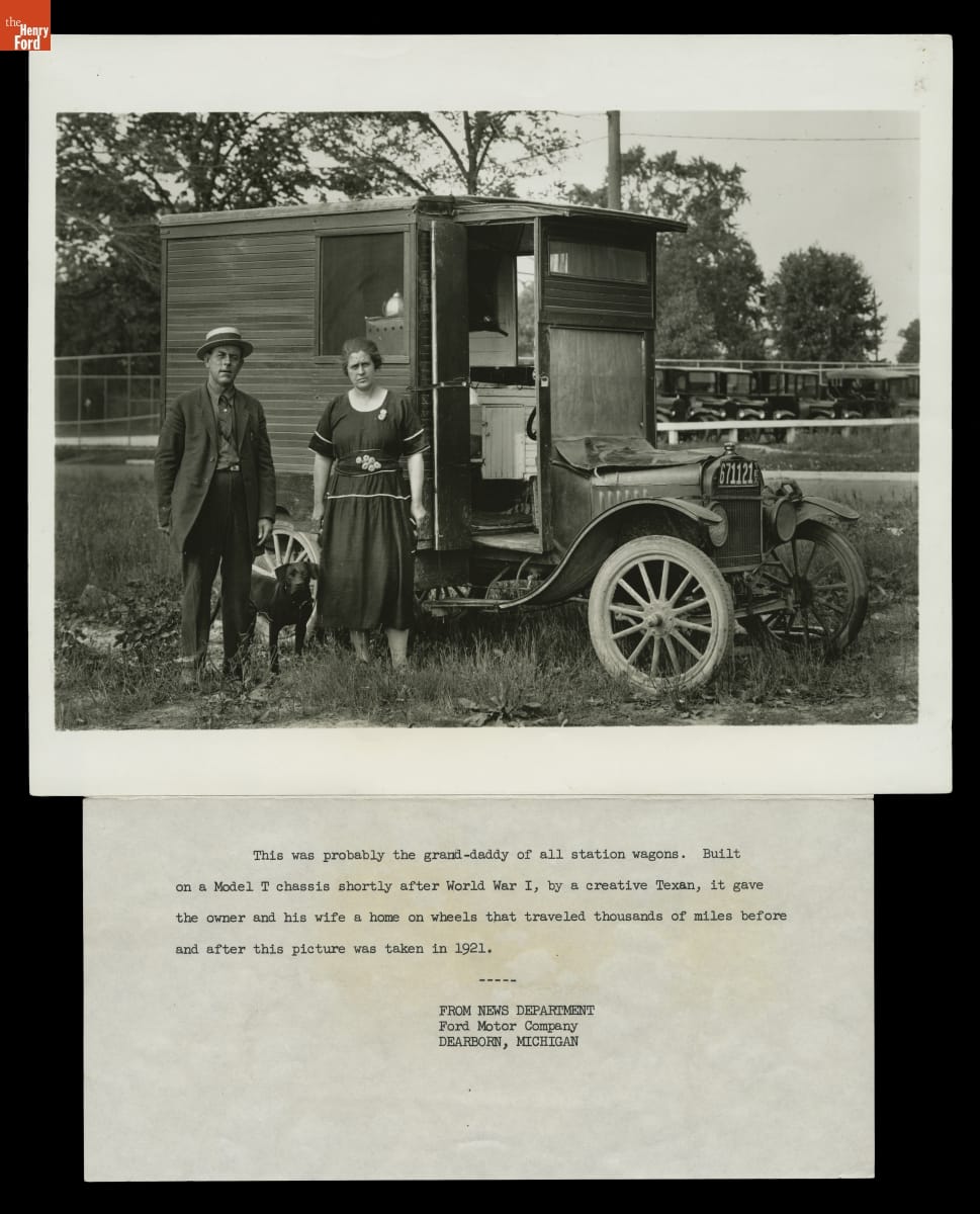 H.D. McCracken, his wife, and his dog used this modified Ford Model T for traveling and touring thousands of miles in the United States. Akin to today's motor home, the woodwork interior and exterior indicates that McCracken was a creative and inventive craftsman. This photograph documents McCracken's handiwork and the usefulness of the Model T for living on the road.