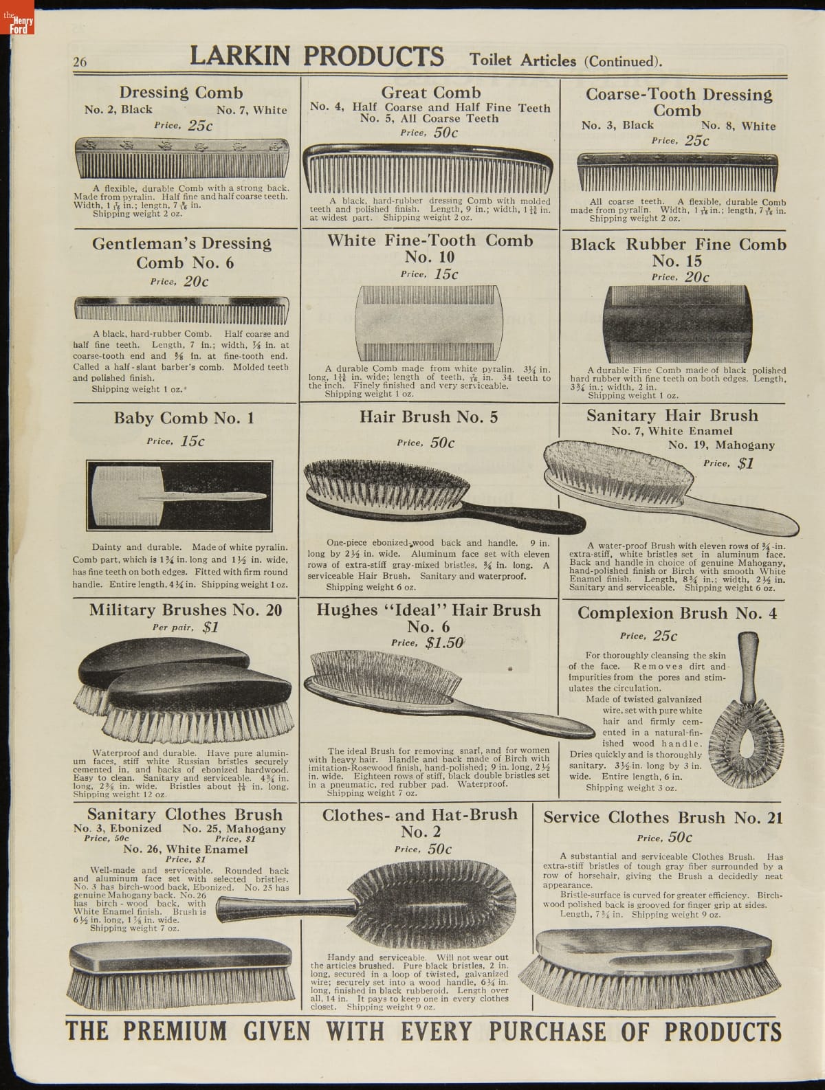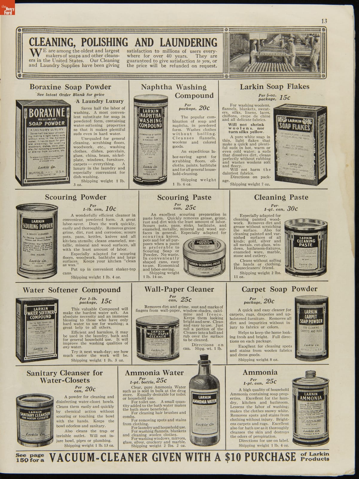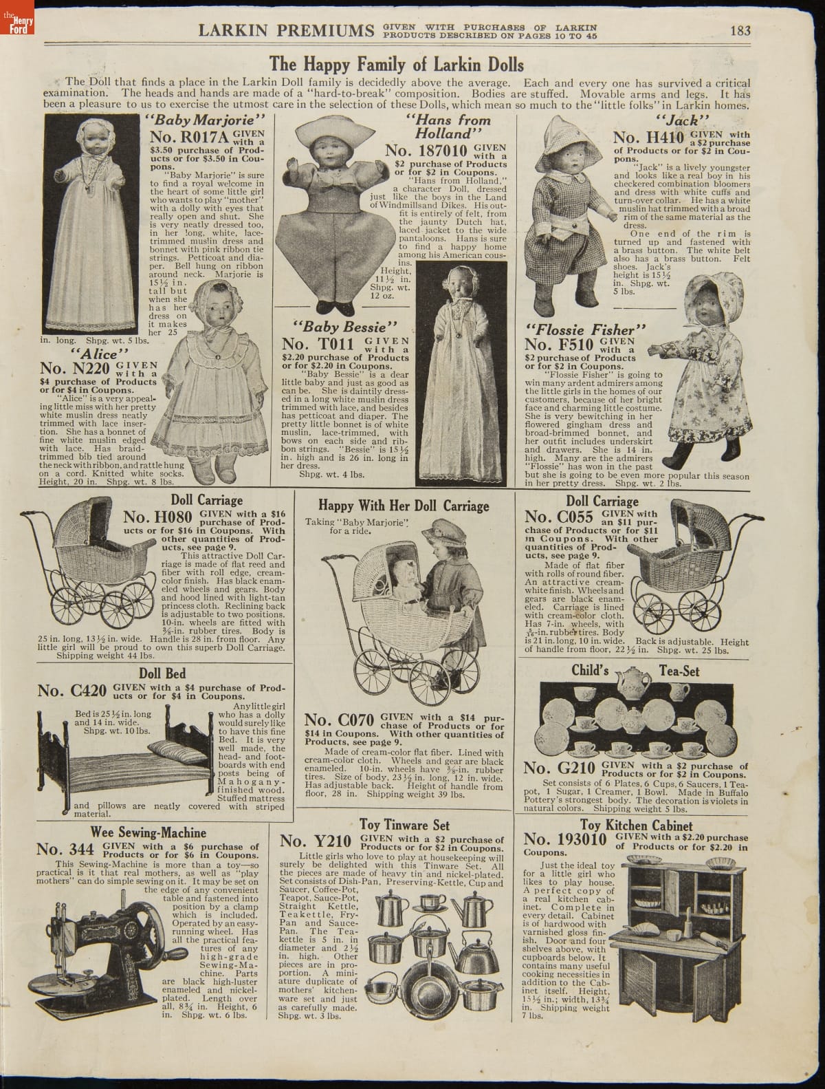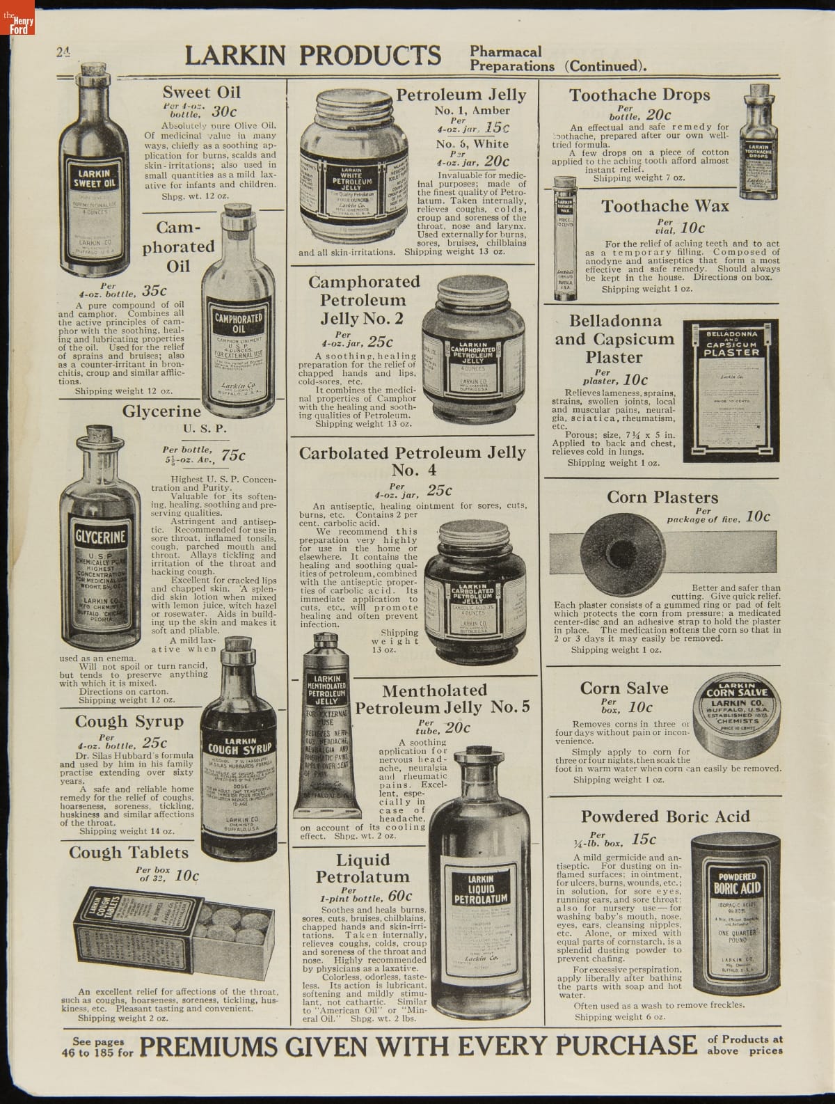 John D. Larkin established a soap manufacturing company in 1875. He hired his brother-in-law, Elbert Hubbard, as a salesman. Hubbard developed "The Larkin Idea," a plan that sold goods directly to consumers through mail-order catalogs and offered incentivizing giveaways. It was a success. By the early 1900s, Larkin's catalogs contained pages of products and even more pages of premiums from which customers could choose.
