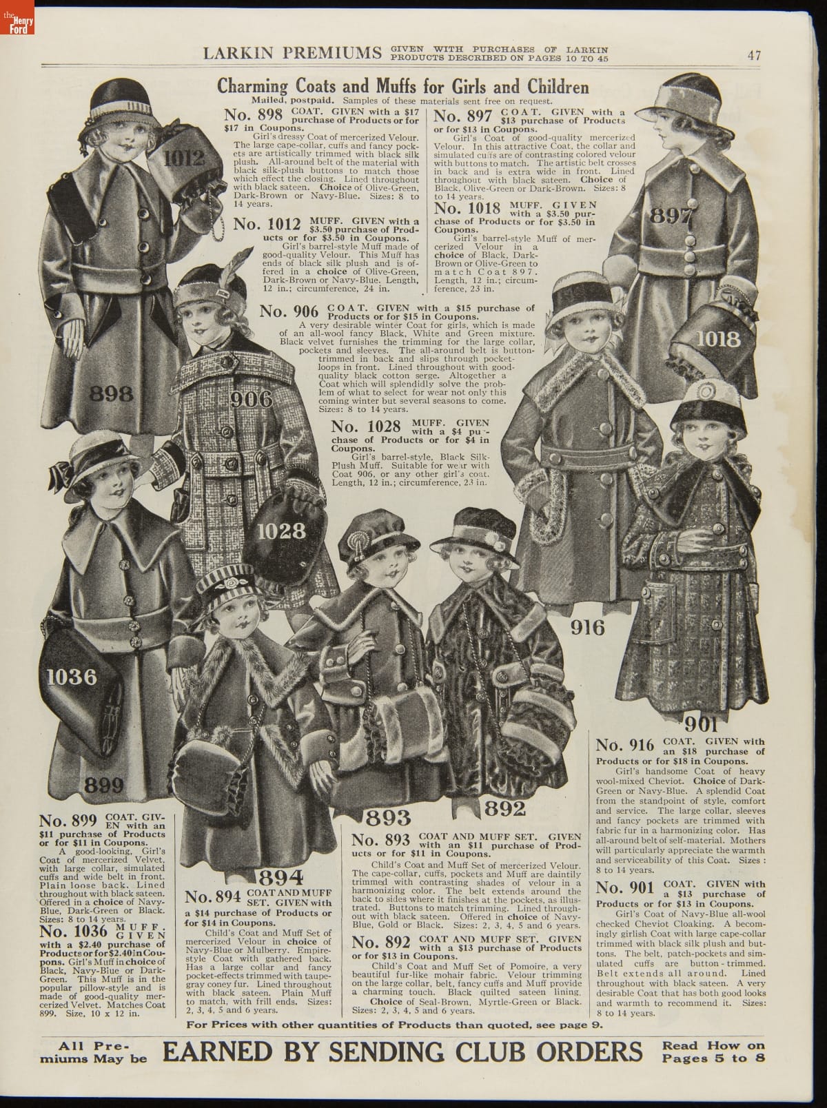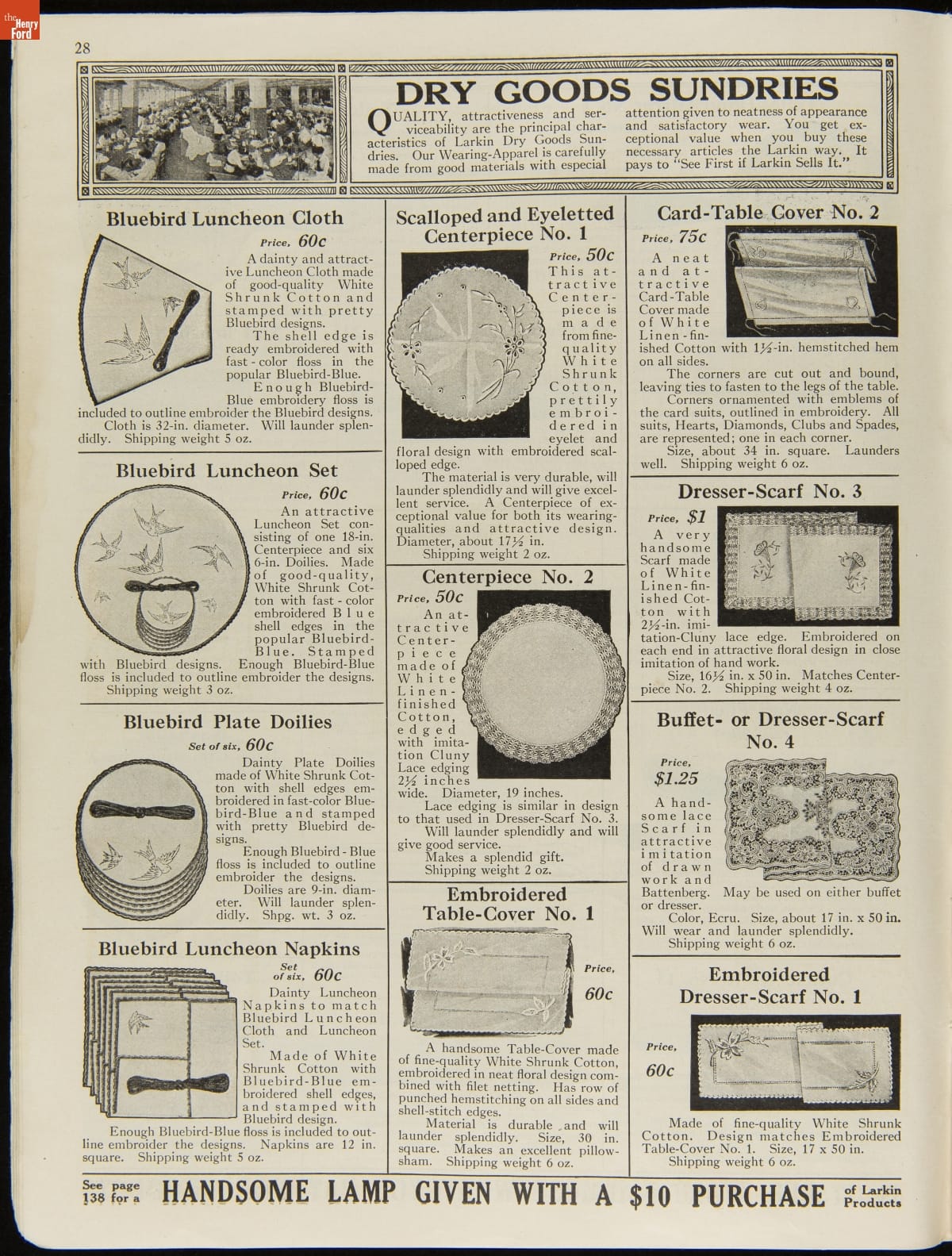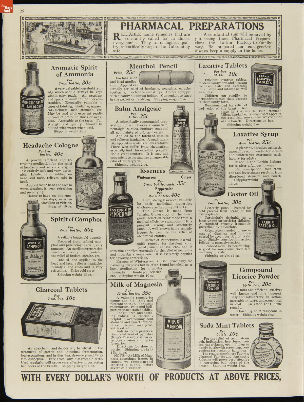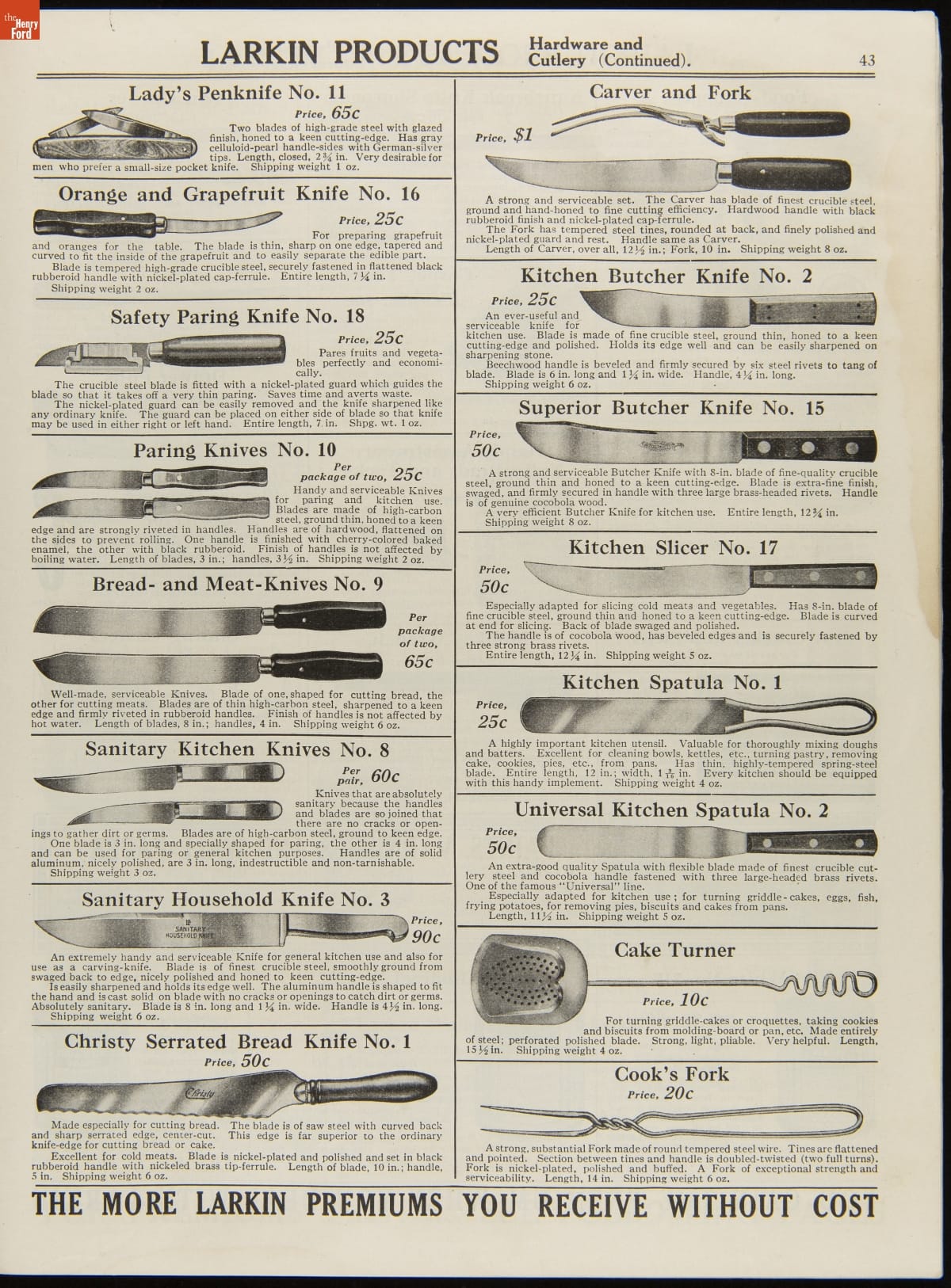 John D. Larkin established a soap manufacturing company in 1875. He hired his brother-in-law, Elbert Hubbard, as a salesman. Hubbard developed "The Larkin Idea," a plan that sold goods directly to consumers through mail-order catalogs and offered incentivizing giveaways. It was a success. By the early 1900s, Larkin's catalogs contained pages of products and even more pages of premiums from which customers could choose.
