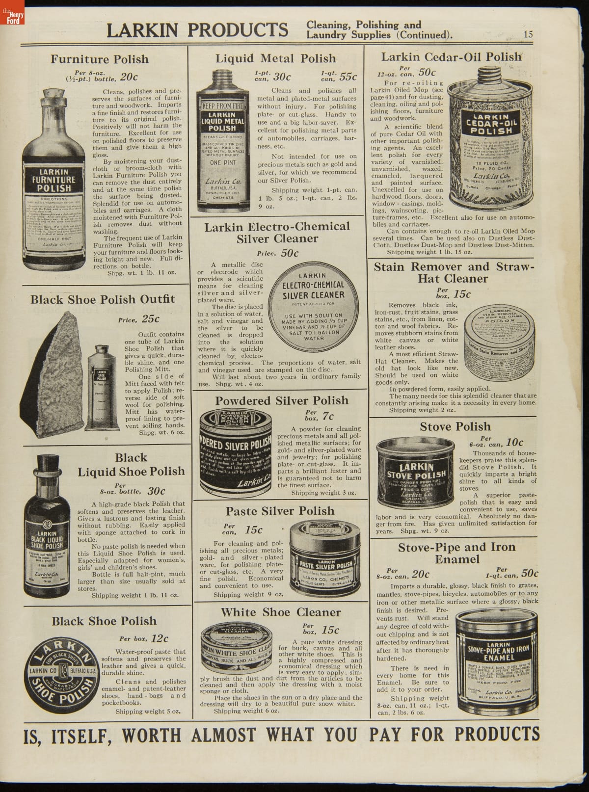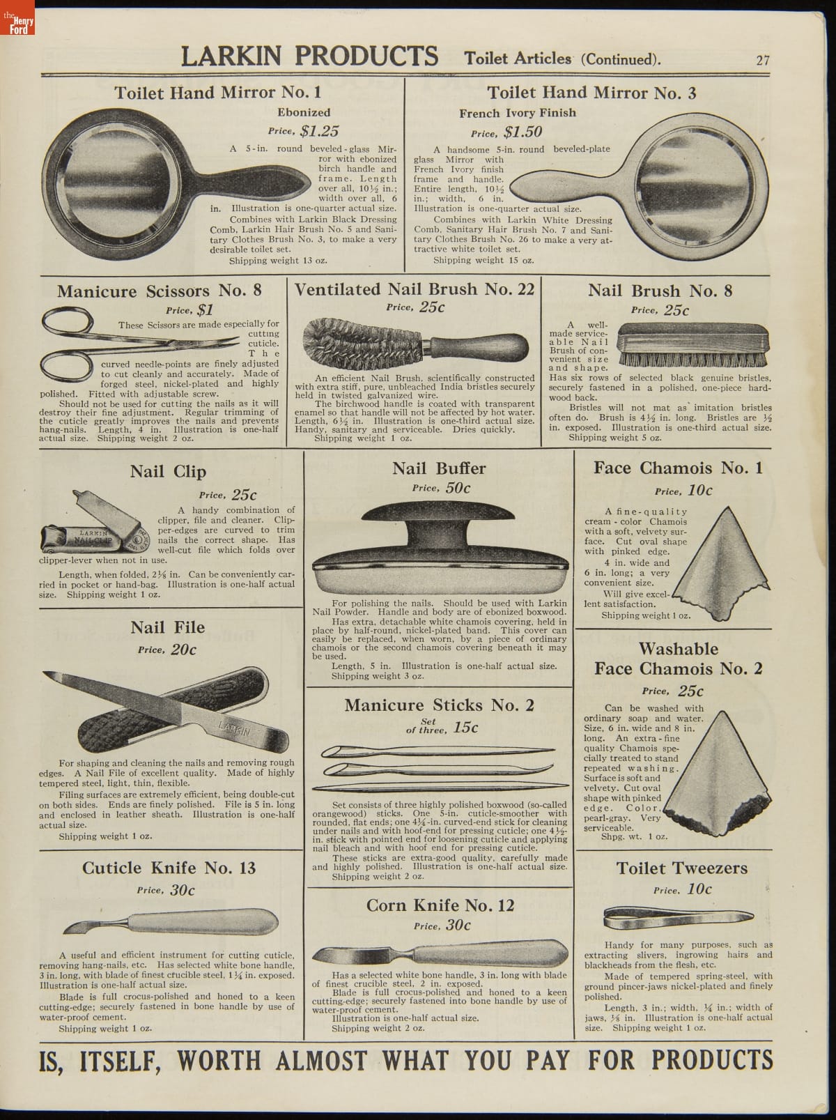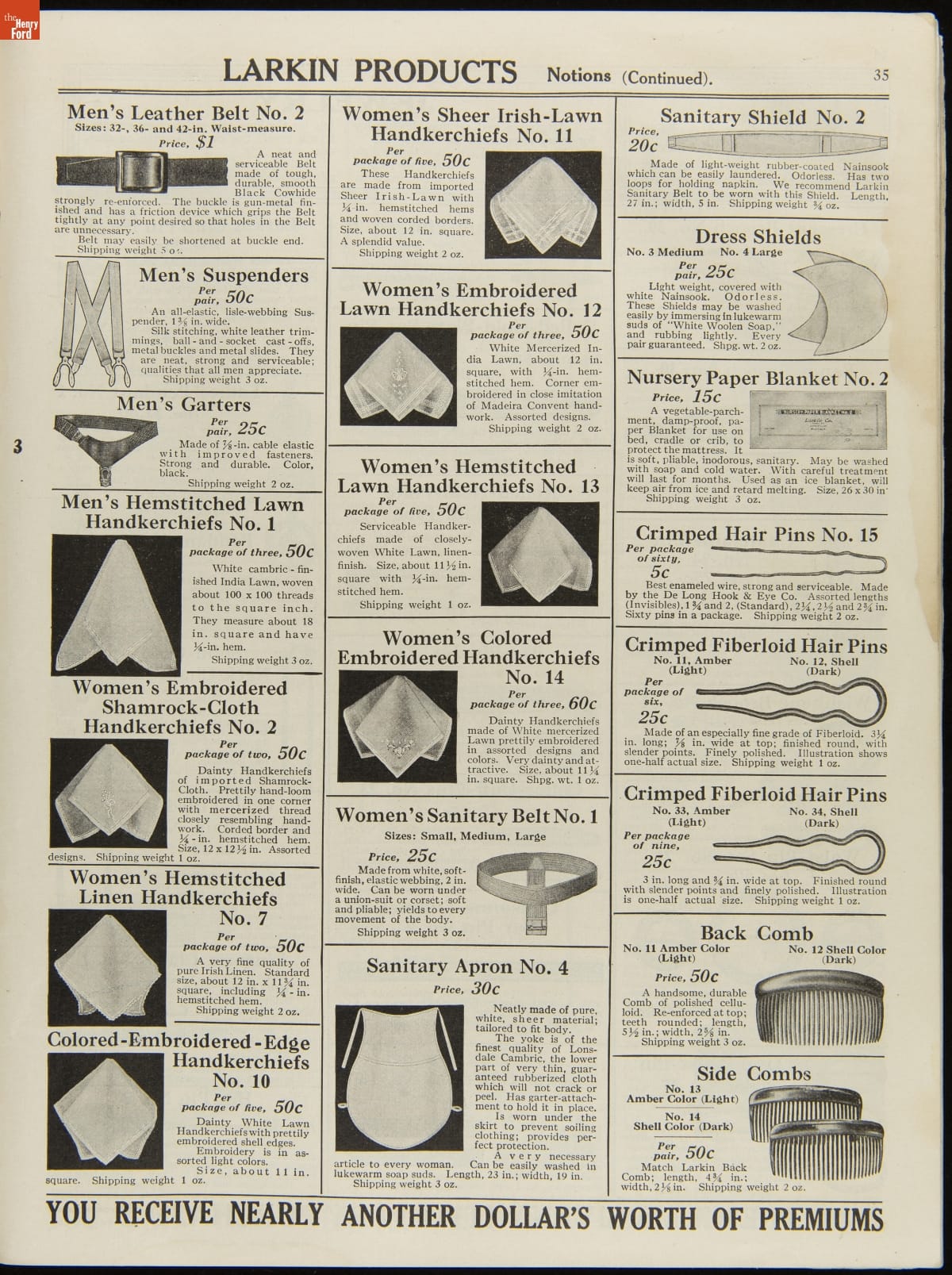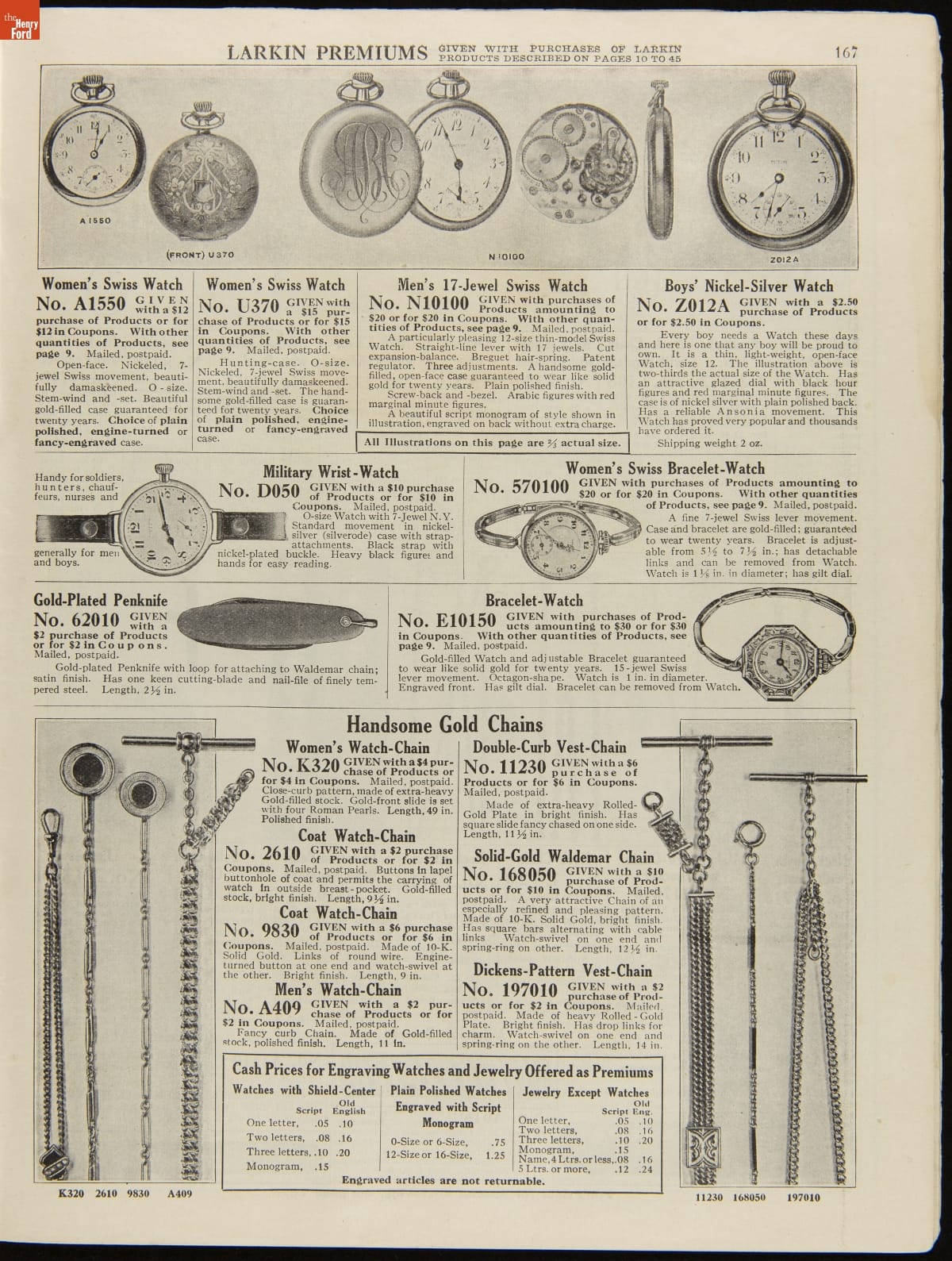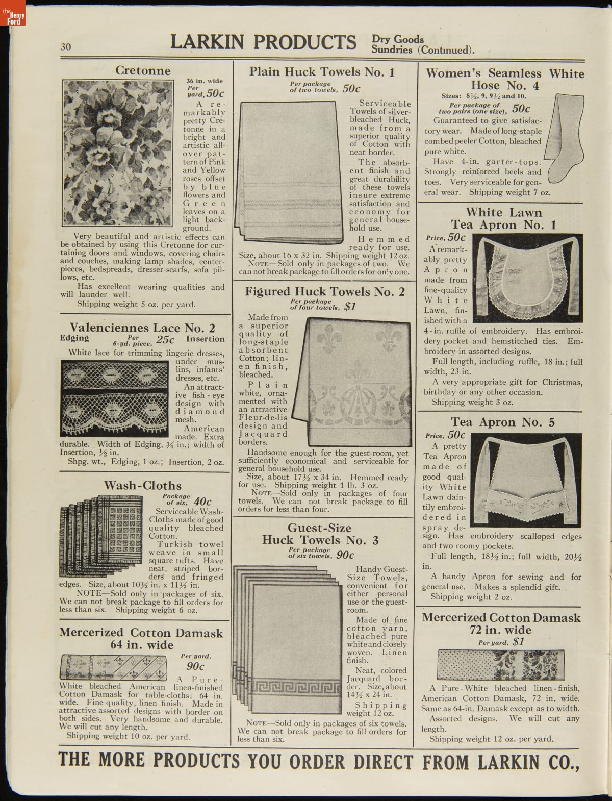 John D. Larkin established a soap manufacturing company in 1875. He hired his brother-in-law, Elbert Hubbard, as a salesman. Hubbard developed "The Larkin Idea," a plan that sold goods directly to consumers through mail-order catalogs and offered incentivizing giveaways. It was a success. By the early 1900s, Larkin's catalogs contained pages of products and even more pages of premiums from which customers could choose.