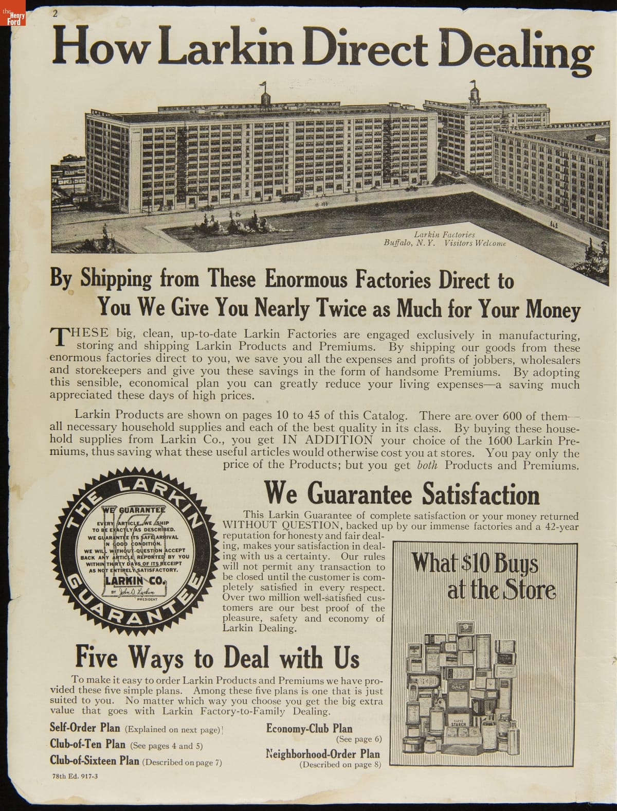 Larkin Company Trade Catalog, "The Larkin Plan Factory-to-Family, Catalog No. 78," Fall and Winter 1917-1918