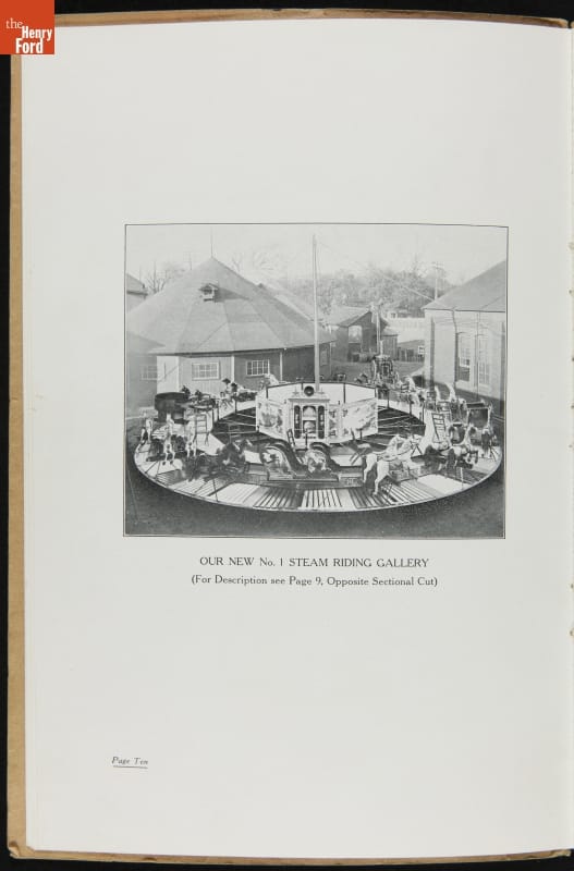 This catalog highlights the products of Herschell-Spillman Company, from portable merry-go-rounds to large stationary "carousselles." This company, one of the most popular and successful American carousel manufacturers of the early 20th century, combined a method of shop production to produce carved wooden animals with their expertise in steam engines and boilers for efficient operation of their merry-go-rounds and carousels.